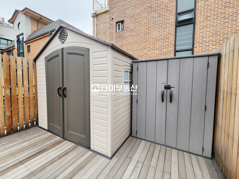 *옥상- 우드데코 바닥 및 가드벽 설치/ 미니 창고 공간-접이식 그늘막보관 창고