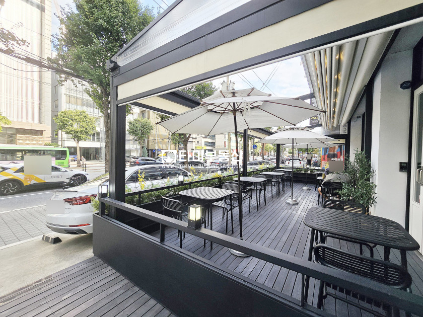 **층고 높고 세련된 인테리어와 유럽풍 테라스식 카페입니다